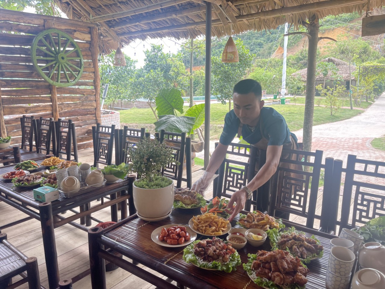 19h00: Quý khách dùng bữa tối tại nhà sàn với ẩm thực đậm đà hương vị núi rừng Tây Bắc. Hoặc tổ chức chương trình lửa trại ấn tượng, cùng nhau quây quần và thưởng thức các tiết mục văn nghệ đặc sắc.