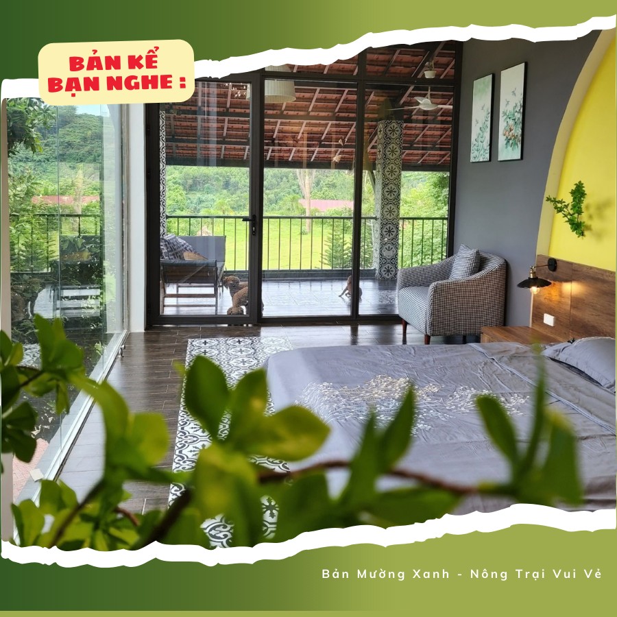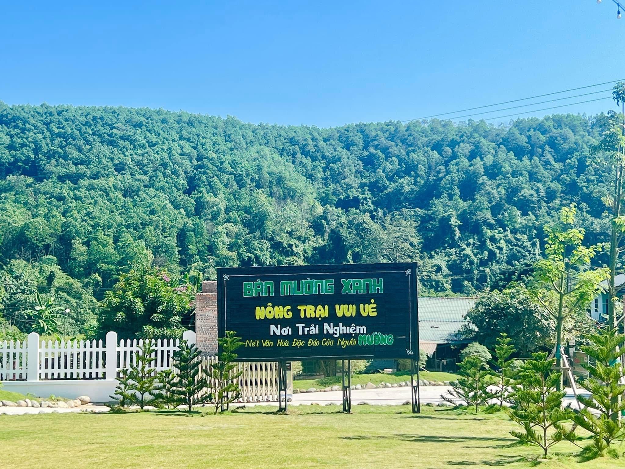 {Bản Mường Xanh nông trại vui vẻ} khi nhắc đến người ta không thể kể đến bức tranh thiên nhiên kết hợp hài hòa với các kiến trúc nhân tạo dưới bàn tay tài hoa của con người. Lạc bước vào bản Mường Xanh, du khách nhất định sẽ được cảm nhận trọn vẹn không khí tinh khôi, hòa mình vào âm thanh và hương thơm của cây cối, hoa cỏ.