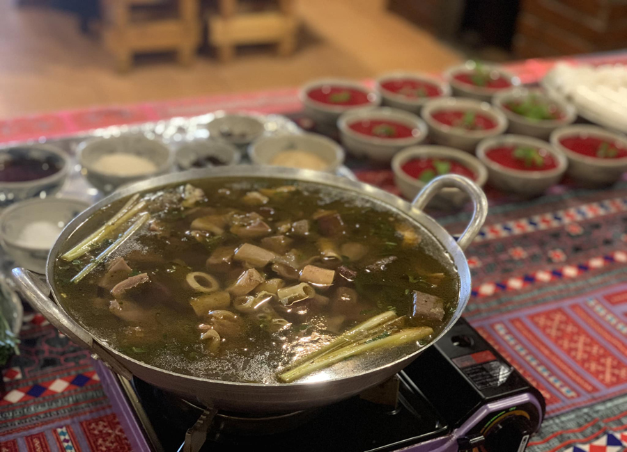 + Lẩu thắng cố: món lẩu độc đáo mà trên vùng cao Tây Bắc du khách mới thưởng thức trọn vẹn hương vị của món ăn được coi là truyền thống của đồng bào nơi đây. Thắng cố được làm nội tạng của ngựa, lợn để thành món lẩu hết sức đặc biệt, ăn kèm với nước xương, rau rừng, món chấm thường là chẩm chéo. Món ăn rất ngon và đặc trưng, tuy vậy vậy không phải ai cũng có thể thưởng thức được món ăn này đâu nhé.