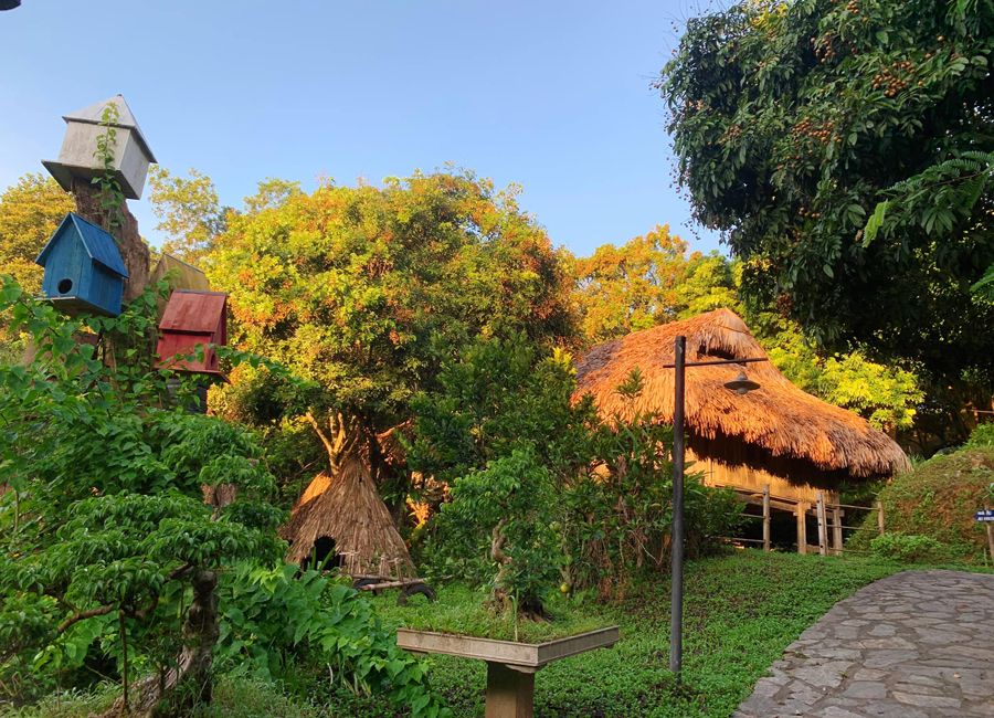 Cảm nhận thiên nhiên xanh mát 4 mùa trong ngày: Men theo lối vào được lát đá người lữ khách đã có thể cảm nhận rõ bầu không khí trong lành, thoáng đãng tại nơi đây. Xung quanh bảo tàng được phủ màu xanh ngăn ngắt của những cây sài đất, một loài hoa quen thuộc với bà con ở nơi đây, sắc xanh của cây hòa trong sắc vàng của hoa nở nộ quanh quanh năm nhưng đẹp nhất có lẽ là khi xuân về. Sáng thức dậy ở một nơi xa bạn sẽ hưởng trọn vẹn 4 mùa trong một ngày với sương sớm và bản tình ca của núi rừng, trưa nắng của hè, chiều hoàng hôn lại phảng phất khói sương và đêm về là cái se lạnh của núi đồi