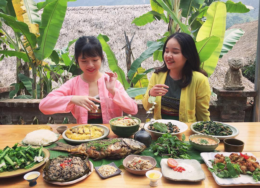 + Đừng quên thưởng thức cỗ lá khi có dịp ghé thăm bảo tàng với cơm lam, xôi ngũ sắc, cá suối nướng, lợn xiên nướng, những món ăn dân dã nhưng lại đậm hương vị riêng của núi rừng.