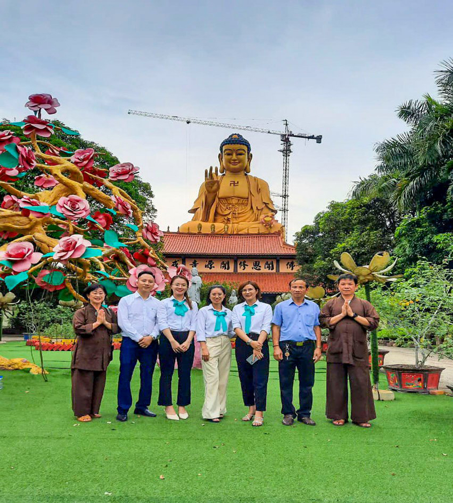 + Bức tượng Phật A Di Đà: Đây là lớn bức tượng Phật A Di Đà nhất Đông Nam Á, cao 72m, đường kính bệ tượng lên tới 1.200m2, được khởi công xây dựng từ năm 2015, bức tượng hiện vẫn đang trong quá trình hoàn thành. Bức tượng uy nghiêm trong tư thế kiết già, gương mặt từ bi, trí huệ, trên tay trái ngài là đóa sen hồng chớm nở, tay phải ở tư thế Giáo hóa thủ ấn. Né có cơ hội du khách nên xuống tầng âm trong tổng 12 tầng tham quan, đây chính là lục đạo luân hồi gồm nhiều cõi như a tu la, địa ngục, quỷ ngã….
