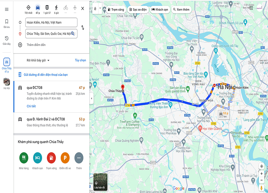 Chỉ dẫn phương tiện di chuyển, đường đi chùa Thầy Quốc Oai