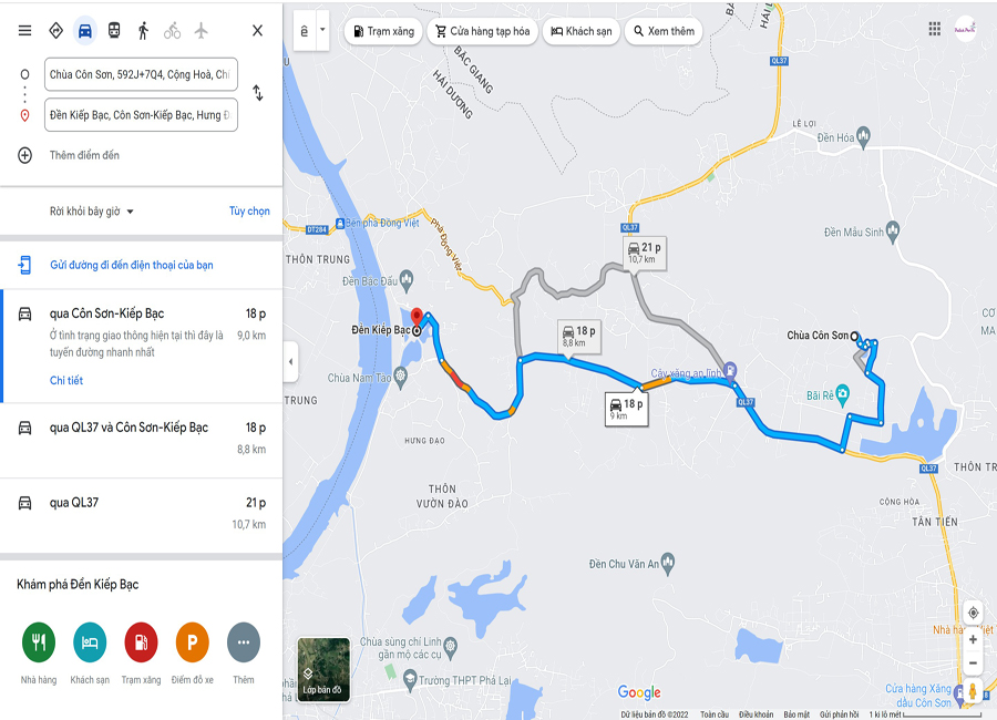 Chỉ dẫn phương tiện di chuyển, đường đi Côn Sơn - Kiếp Bạc