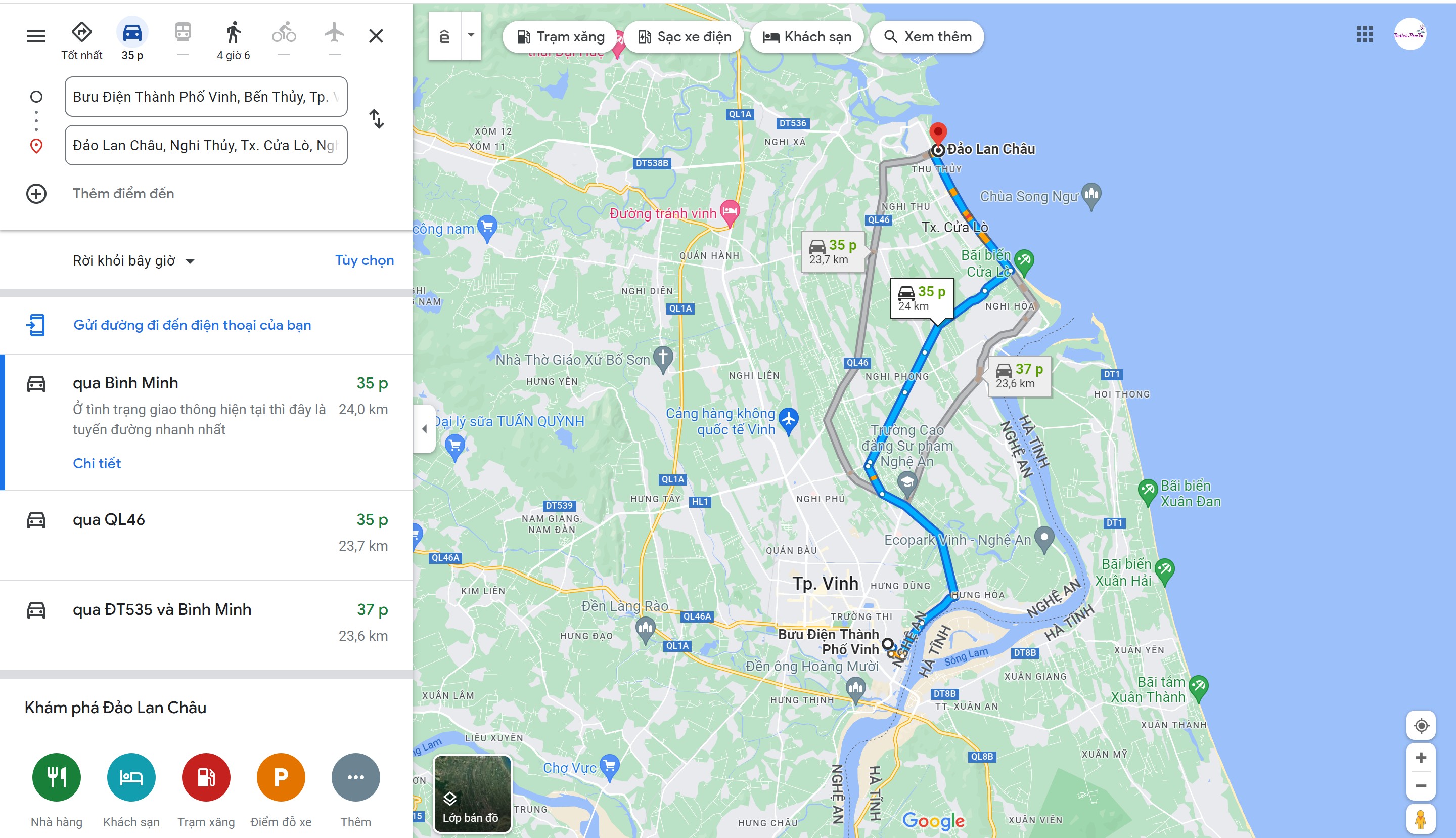 Chỉ dẫn phương tiện di chuyển, đường đi đảo Lan Châu Cửa Lò