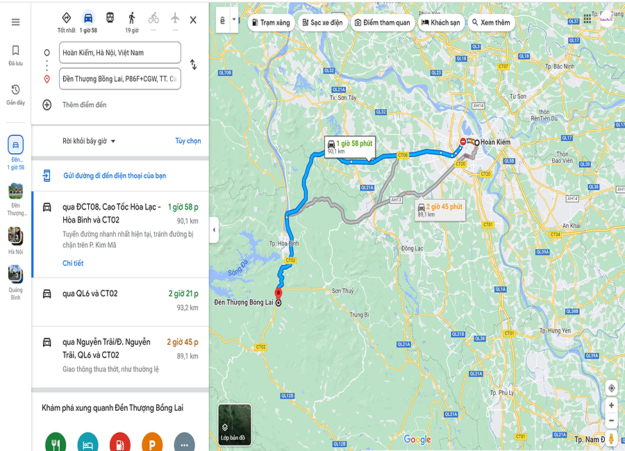 + Nếu di chuyển tự túc bằng phương tiện cá nhân, du khách có thể lựa chọn dùng ô tô hoặc xe máy. Tuy nhiên, do địa hình đồi núi mà chúng tôi khuyên bạn nên di chuyển bằng ô tô để đảm bảo an toàn hơn. Từ điểm xuất phát tại sân vận động quốc gia Mỹ Đình, xe đi theo đường Lê Quang Đạo -> tiếp tục rẽ phải dọc theo cao tốc Hòa Lạc - Hòa Bình -> sau quãng đường gần 80km, đến đỉnh Dốc Cun, xe rẽ phải đi hướng thị trấn Cao Phong, qua bưu điện huyện Cao Phong khoảng 800m rẽ phải và đi thêm 300m nữa là đến đền Bồng Lai nhé. Bạn nên sử dụng ứng dụng chỉ đường Google Maps để xác định được hướng đi sẽ dễ dàng hơn.