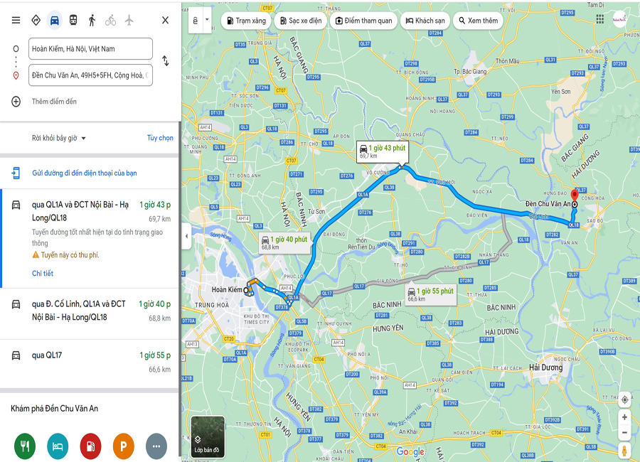 Chỉ dẫn phương tiện di chuyển, đường đi đền Chu Văn An Hải Dương