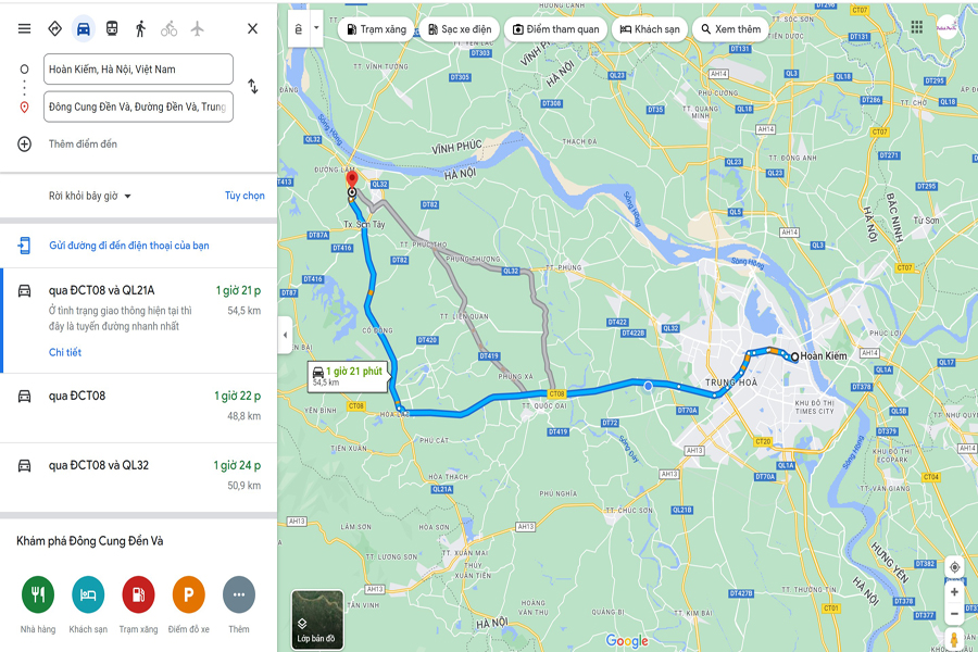 Chỉ dẫn phương tiện di chuyển, đường đi Đền Và Sơn Tây Hà Nội