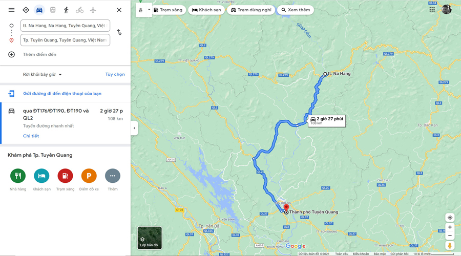 Chỉ dẫn phương tiện di chuyển, đường đi Na Hang Tuyên Quang
