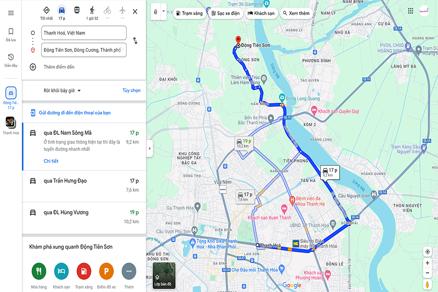Chỉ dẫn phương tiện di chuyển, đường đi động Tiên Sơn Thanh Hóa