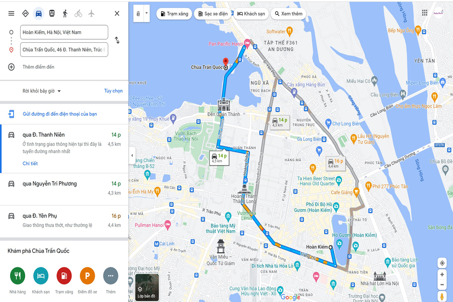 Chỉ dẫn phương tiện di chuyển, đường đi Chùa Trấn Quốc Hà Nội
