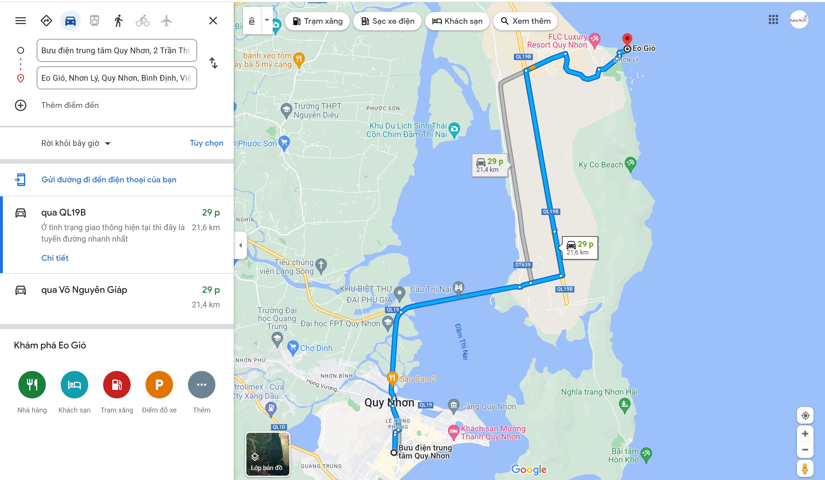 Chỉ dẫn phương tiện di chuyển, đường đi Eo Gió từ Quy Nhơn