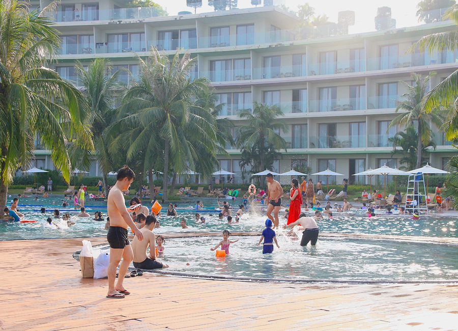 + Bể bơi nước mặn: được ví như “bờ biển thu nhỏ”, bể bơi nước mặn đem đến cho bạn trải nghiệm hết sức thú vị, ngay trong khuôn viên của Resort, bạn được đắm mình vào làn nước mát, cảm nhận được rõ nét hương vị của biển cả tự nhiên ngay trong khu bể bơi đặc biệt này.