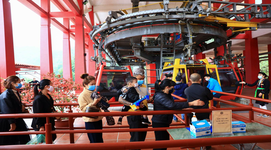Mùa lễ hội sẽ rất đông đúc nên du khách nên đi sớm để không quá bon chen khi xếp hàng vào Cabin cáp treo.