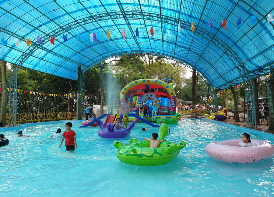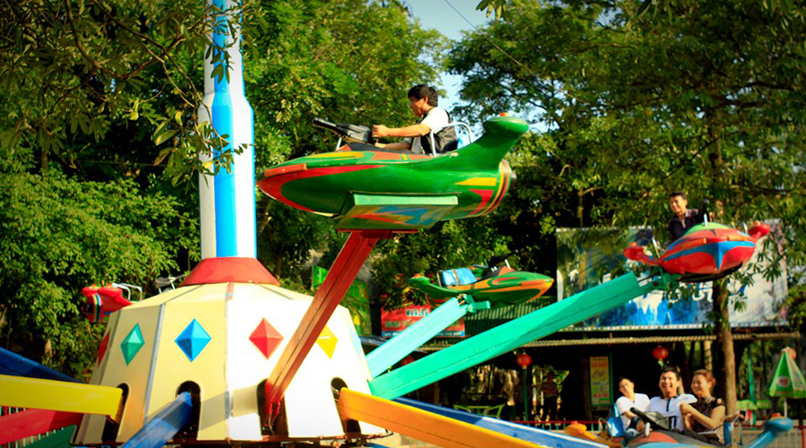 + Khu trò chơi ngoài trời: tàu siêu tốc, đu quay dây văng, cá heo lướt sóng, trượt thác nước, crazy way, vũ trụ bay,....