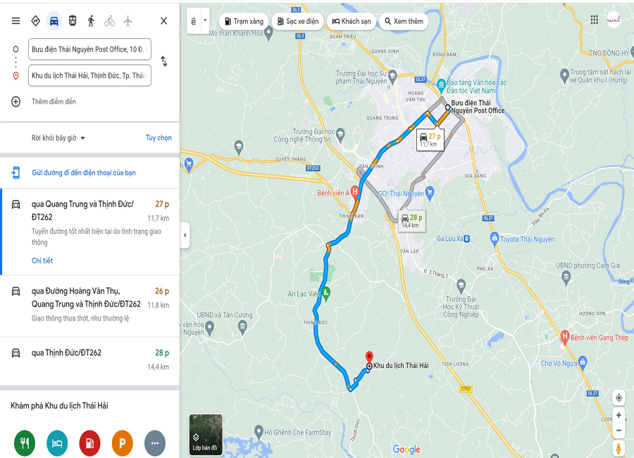 Cách trung tâm thành phố Thái nguyên chỉ khoảng 10km, bạn có thể dễ dàng lái ô tô hoặc chạy xe máy khoảng 20 phút là đến {Khu du lịch Thái Hải Thái Nguyên}. Dulich.Pro.Vn sẽ mách bạn cung đường thuận tiện và tiết kiệm thời gian như sau"