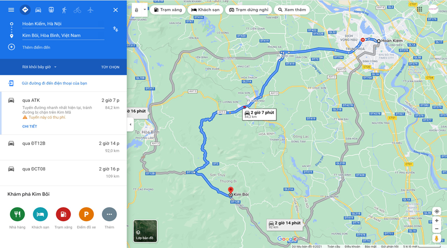 Kim Bôi - Hòa Bình cách trung tâm thủ đô Hà Nội 75km về hướng Tây Nam theo chỉ dẫn của Google Maps. {Đi Kim Bôi Hòa Bình} đường bộ khá thuận tiện nên bạn có thể lựa chọn nhiều phương tiện để đi lại như sau: