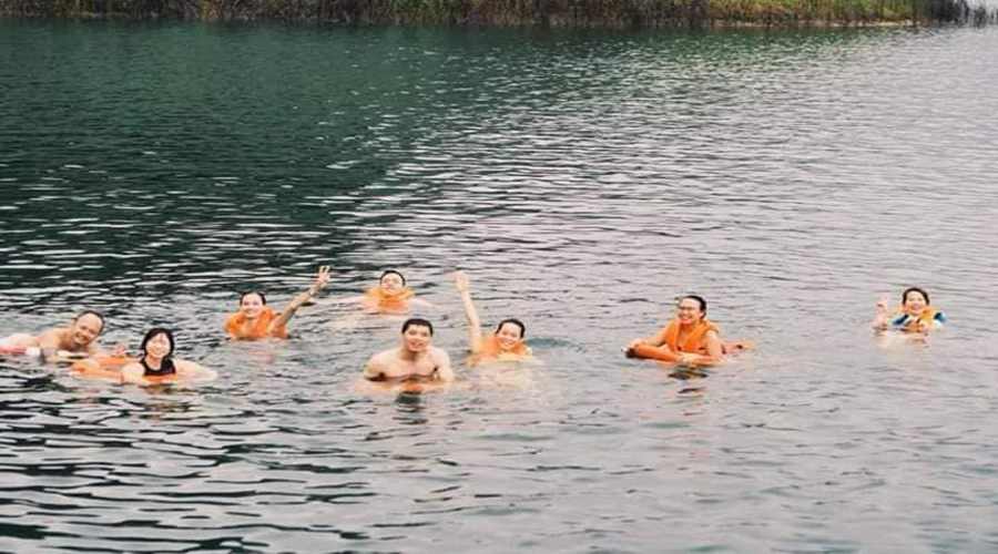 + Tự do tắm táp, bơi lội dưới làn nước trong mát của hồ tự nhiên.