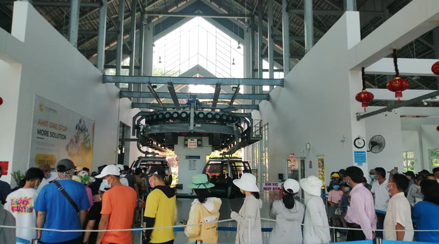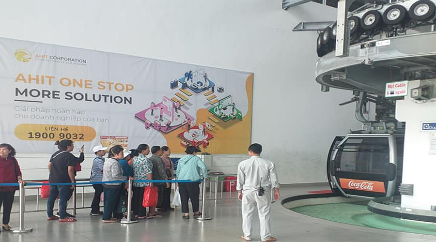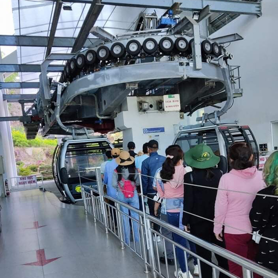 Bước 2: Sau khi có vé, di chuyển tới khu vực xếp hàng qua cửa soát vé để lên Cabin cáp treo.
