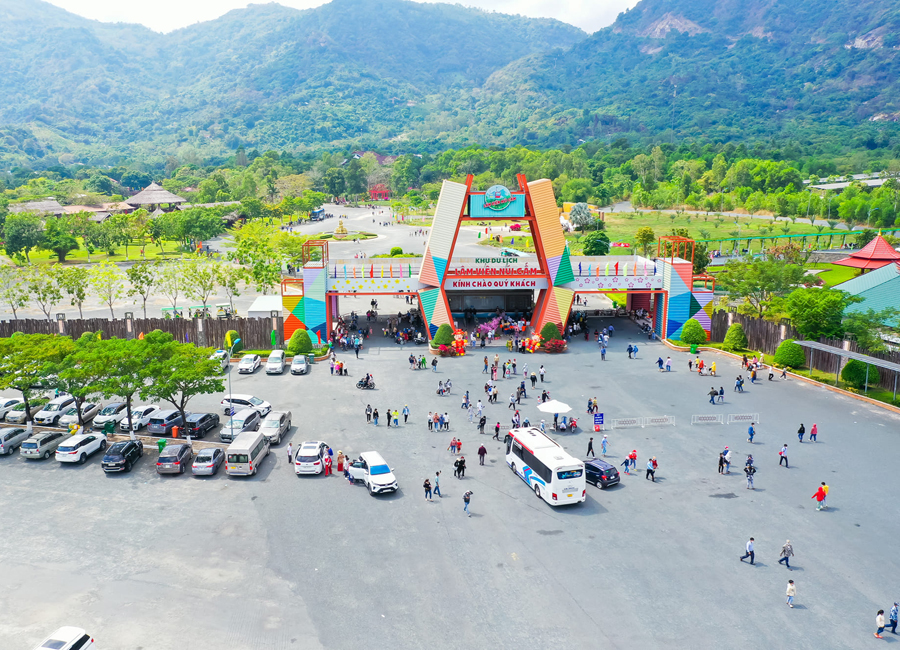 Du khách đi có số lượng đoàn đông vui chơi, vãn cảnh núi Cấm An Giang. Bạn nên liên hệ mua trước vé cáp treo, các dịch vụ xe, ăn uống để không phải mất thời gian chờ đợi, cũng như được hỗ trợ tốt hơn từ phía khu du lịch.