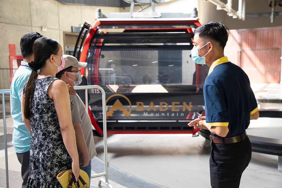 Bước 3: Sau khi nhận vé, du khách qua cửa soát vé, sau đó lên xe điện đưa tới nhà ga cáp treo để lên Cabin, bắt đầu hành trình khám phá khu du lịch Núi Bà Đen.