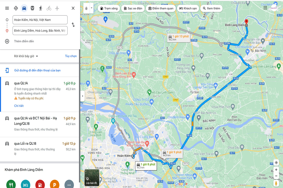 Chỉ dẫn phương tiện di chuyển, đường đi làng Diềm Bắc Ninh