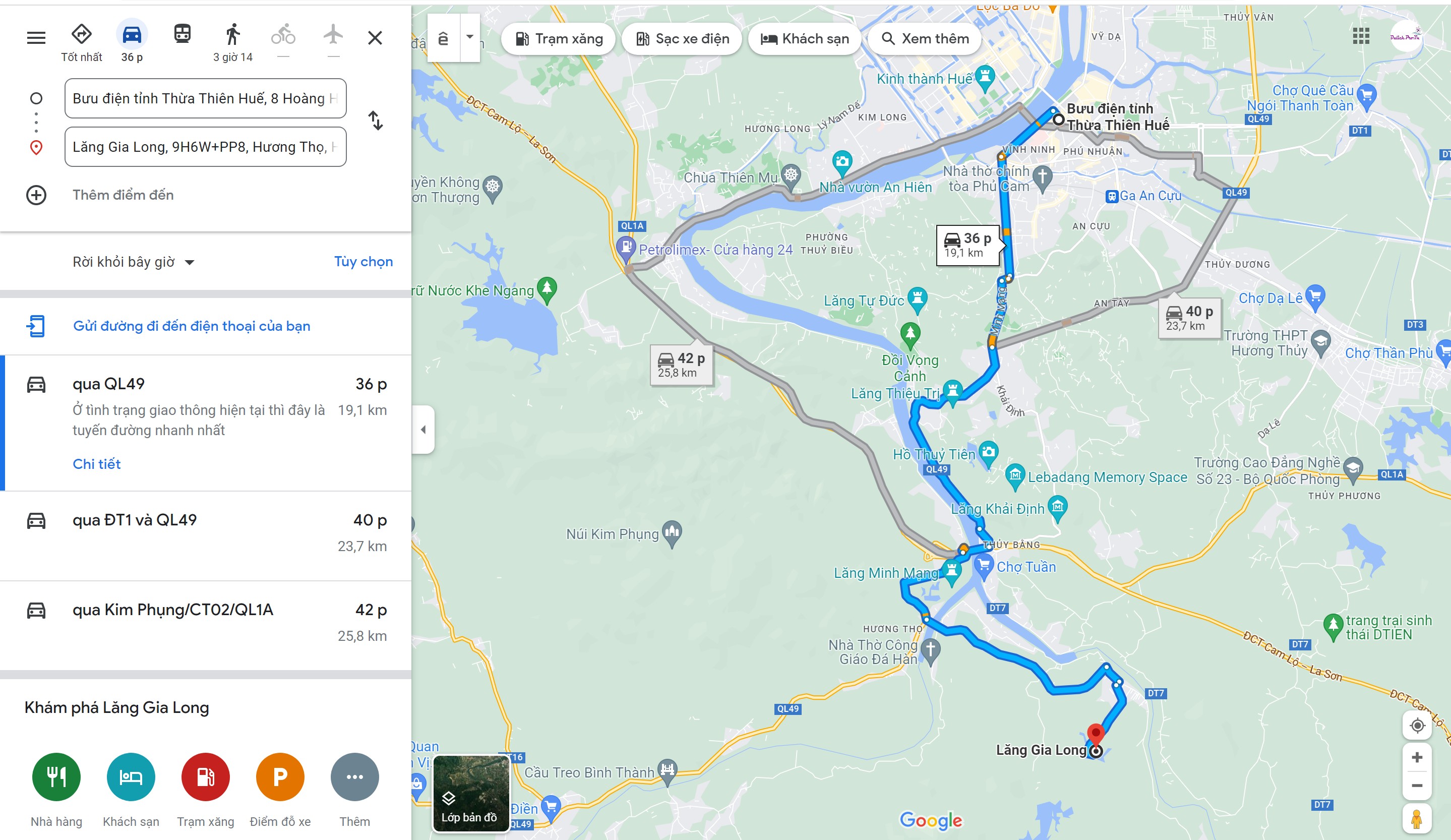 Chỉ dẫn phương tiện di chuyển, đường đi lăng Gia Long