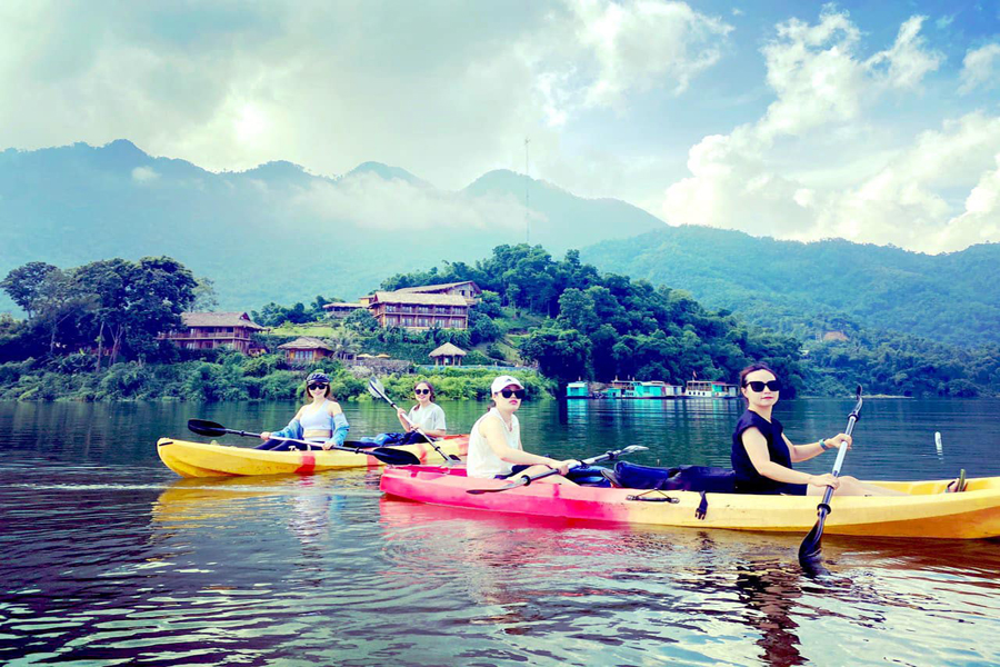 + Chèo thuyền Kayaking: được du nhập từ một bộ môn thể thao ở phương Tây, nhưng rất phù hợp tại Việt Nam, trên chiếc thuyền đơn bằng chất liệu composite bền hình thù tựa chiếc độc mộc của bà con dân tộc nơi đây, với mái chèo chuyên nghiệp trên mặt hồ thủy điện Hòa Bình, bạn được trải nghiệm từng lướt chèo thú vị trên hồ thủy điện Hòa Bình.