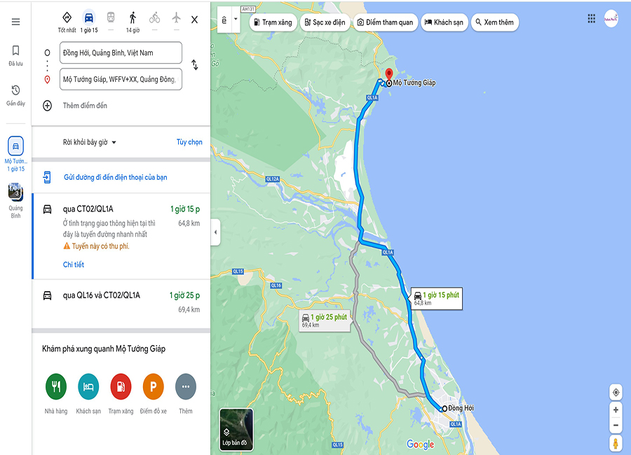 Chỉ dẫn phương tiện, đường đi Mộ đại tướng Võ Nguyên Giáp từ Đồng Hới