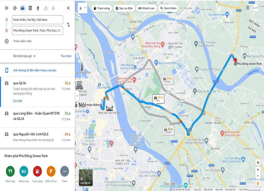 Chỉ dẫn phương tiện di chuyển, đường đi Green Park Gia Lâm
