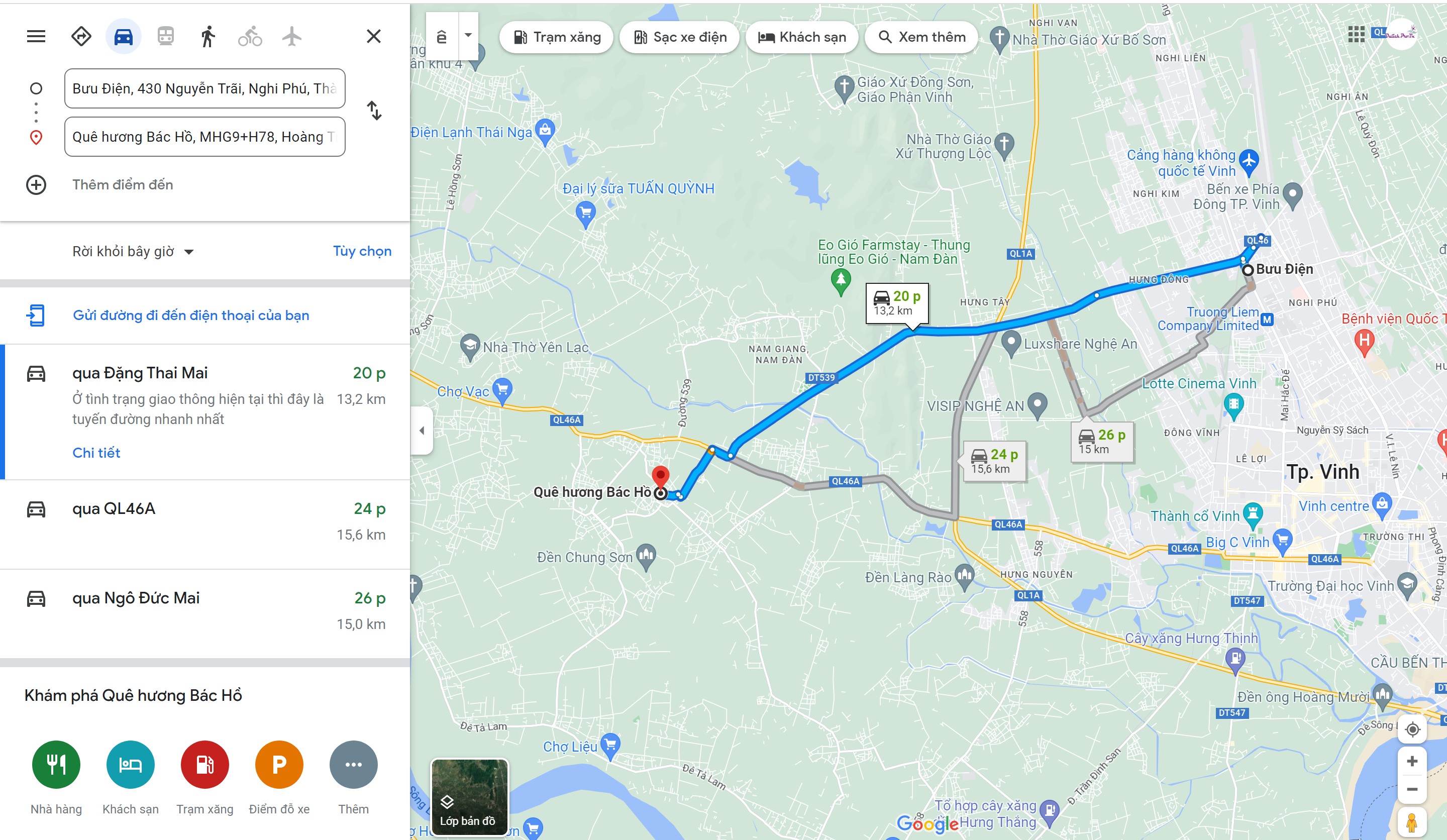 Chỉ dẫn phương tiện di chuyển, đường đi Quê Bác Nam Đàn