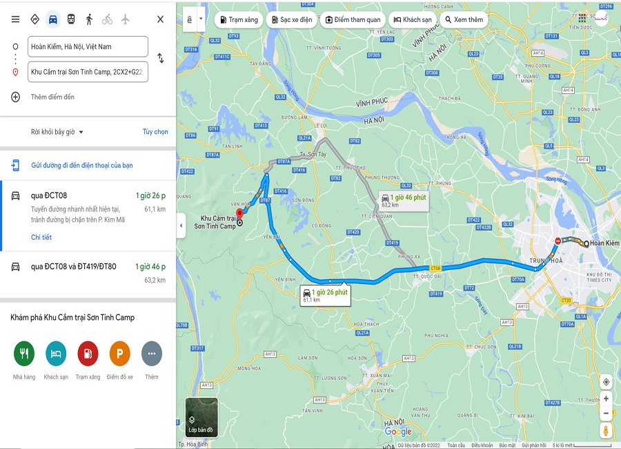 Chỉ dẫn phương tiện di chuyển, đường đi Sơn Tinh Camp Ba Vì