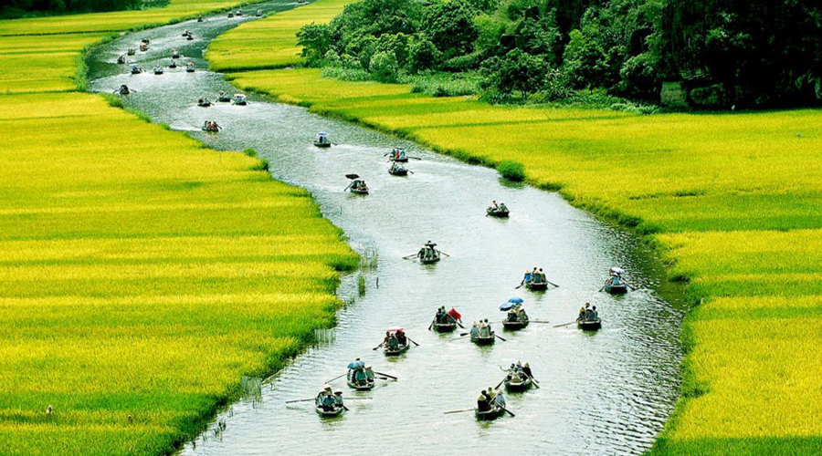 + Cuối tháng 5 và đầu tháng 6: Là thời gian lúa chín vàng trên khắp các cánh đồng ở Tam Cốc – Bích Động, những cánh đồng lúa chuyển dần từ màu xanh sang màu lúa chín vàng tươi tạo nên một bức tranh tuyệt đẹp.