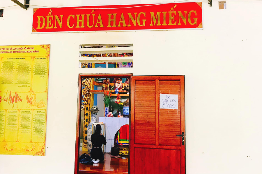 + Đền Hang Miếng ở đâu ? Ngôi đền nằm ở bờ phải sông Đà, trên núi Đầu Rồng, bản Nà Bái xã Quang Minh, huyện Vân Hồ, tỉnh Sơn La. Có lẽ nhiều du khách sẽ quan tâm, bởi đền hang Miếng là điểm đến tâm linh được nhiều du khách lựa chọn đi cùng đền chúa Thác Bờ trong tuyến hành trình du lịch Thác Bờ hồ Hòa Bình. Cũng xin thông tin thêm để bạn biết cả hai ngôi đền đều thờ ban chính là người phụ nữ anh hùng dân tộc Mường Đinh Thị Vân.