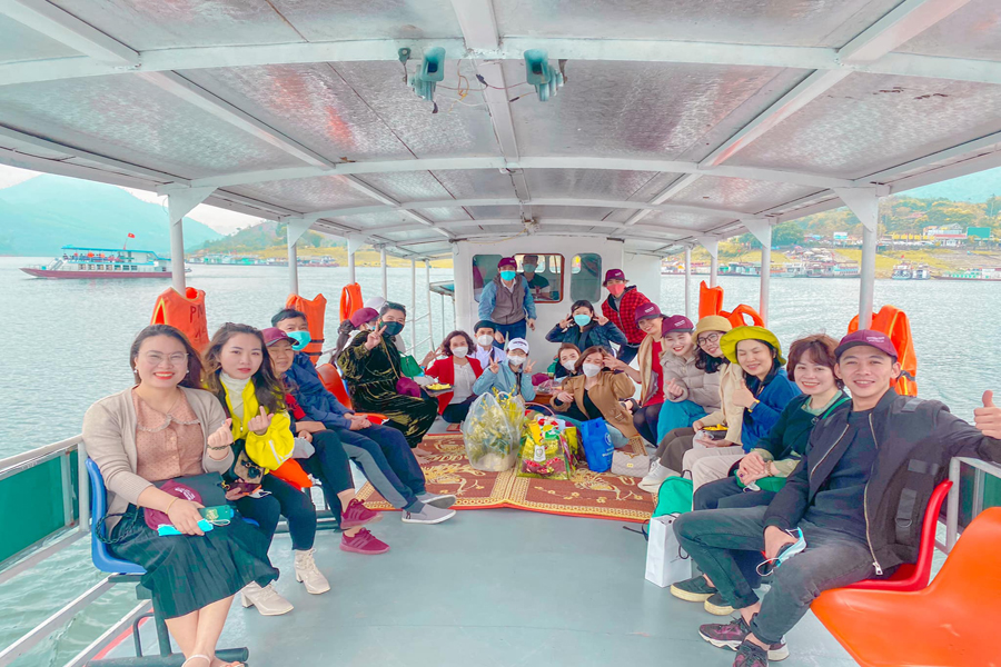 + Trưởng đoàn phải lưu lại số điện thoại lái thuyền và số hiệu của thuyền mình đi. Bởi vì mùa lễ hội đông, nên tàu thuyền sẽ phải di chuyển liên tục để nhường chỗ cho tàu khác vào đón trả khách.
