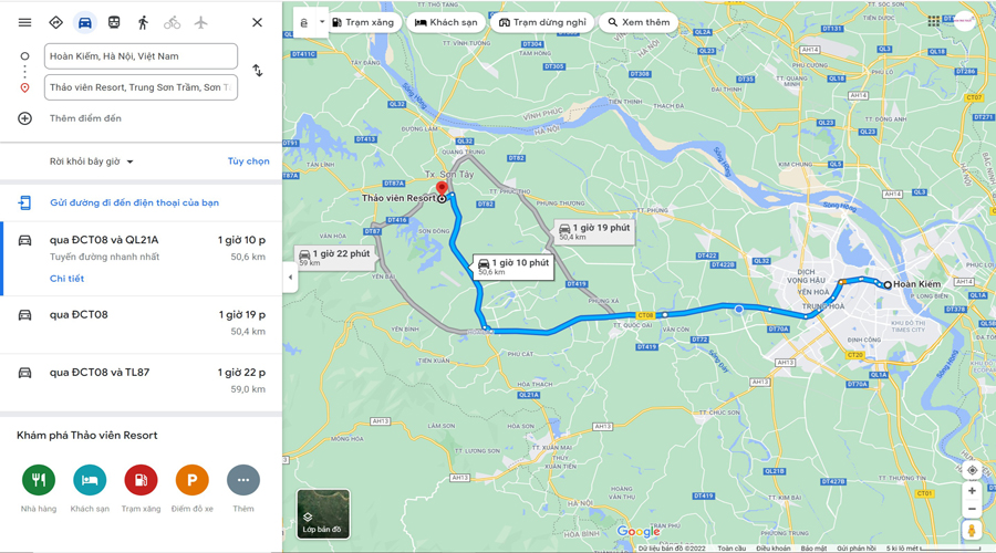 Theo hướng dẫn chỉ đường từ Google Maps thì từ Hoàn Kiếm, Hà Nội đến Thảo Viên resort có quãng đường 50,8km và sẽ mất khoảng 1 giờ 18 phút để tới được đây. Có nhiều phương tiện để bạn lựa chọn như xe khách, xe buýt. Tuy nhiên nếu đoàn bạn là các cơ quan, doanh nghiệp hay các nhóm gia đình có số lượng đông thì nên thuê xe ô tô du lịch hoặc đi xe ô tô cá nhân để chu đáo và chủ động hơn.
