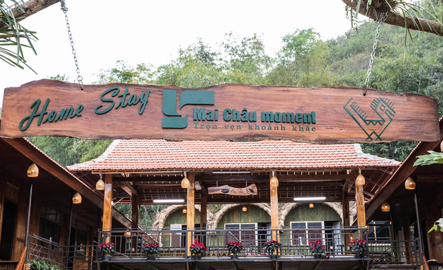 Nhà nghỉ Mai Châu Moment: Toạ lạc với bốn bề là núi non hùng vĩ. Từ đây bạn rất thuận tiện cho việc di chuyển tham quan các địa điểm du lịch nổi tiếng tại Mai Châu như: Hang Chiều, bản Lác, bản Pom Coong,….Được xây dựng và thiết kế theo phong cách nhà cổ của người Việt Nam.