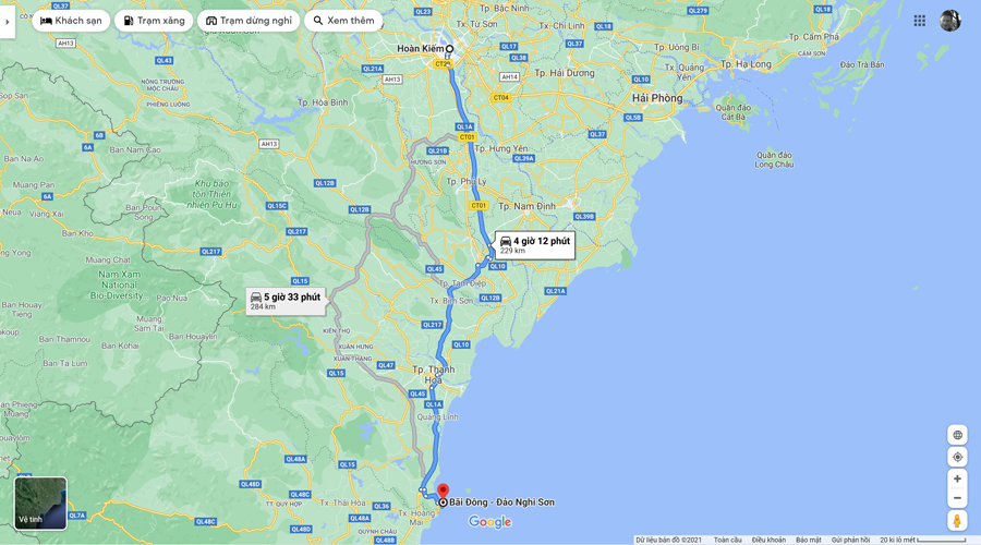 Lộ trình từ Hà Nội => QL1A hướng Thường Tín đi Hà Nam => Ninh Bình => Thanh Hóa => Tĩnh Gia => Bãi Đông - Nghi Sơn.