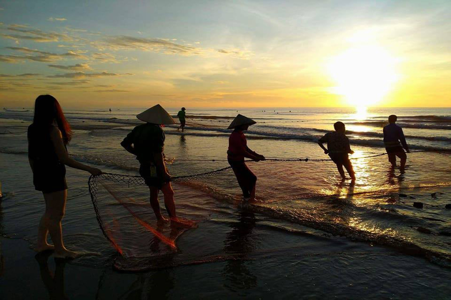 Sáng: Dậy sớm ngắm bình minh, dạo biển hay cùng những ngư dân kéo những mẻ lưới đầu ngày sau một đêm vất vả ra khơi.