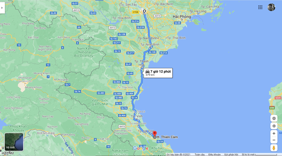 Chỉ dẫn phương tiện di chuyển, đường đi Thiên Cầm từ Hà Nội