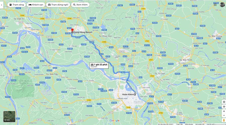 + Đi bằng ô tô: đây là phương tiện phù hợp cũng như được nhiều du khách lựa chọn nhất với hành trình tới Sông Hồng Resort. Xuất phát từ trung tâm hội nghị Quốc Gia, xe đi theo đường Phạm Hùng hướng đi cầu Thăng Long => dọc theo đường Võ Văn Kiệt, qua cây xăng Nam Hồng rẽ vào đường Mê Linh => tiêp nối vào QL2A chạy theo hướng Yên Lạc => đến vòng xuyến Yên Lạc rẽ phải => đi theo đường Lam Sơn khoảng 2km nữa, điểm đến nằm bên phải nhé.