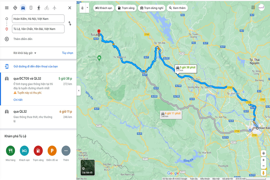 Nếu bạn muốn có hành trình từ Hà Nội đến Tú Lệ, ô tô là lựa chọn hoàn hảo nhất nhé vì quãng đường rất xa và nhiều đèo. Từ trung tâm Hội nghị Quốc gia tại Hà Nội, xe đi dọc theo đại lộ Thăng Long hướng đi Ba Vì => qua cầu Đồng Quang rẽ phải đi vào QL32 đi Yên Bái => Qua thị xã Nghĩa Lộ khoảng 50km nữa là đến rồi.