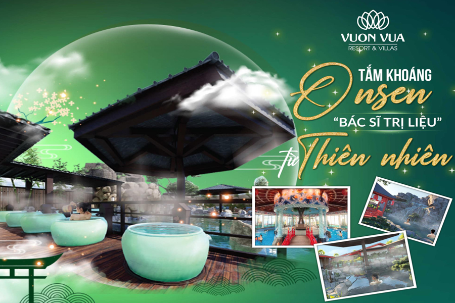 + Voucher Vườn Vua resort nghỉ dưỡng trọn gói giá từ 1.050.000VND/khách. Voucher đã bao gồm dịch vụ 01 đêm nghỉ dưỡng tại hạng phòng tiêu chuẩn, 01 bữa sáng tại nhà hàng Vườn Vua, 01 Bữa ăn trưa/ tối theo set menu, miễn phí trà, café, nước suối tại phòng, Miễn phí dịch vụ xe điện di chuyển trong resort, Miễn phí sử dụng bể bơi khoáng nóng trong nhà, ngoài trời, phòng gym, khu vui chơi trẻ em.